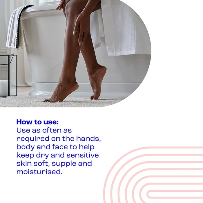 Use as often as required on the hands, body and face to help keep dry and sensitive skin soft, supple and moisturised. For best results, use daily.