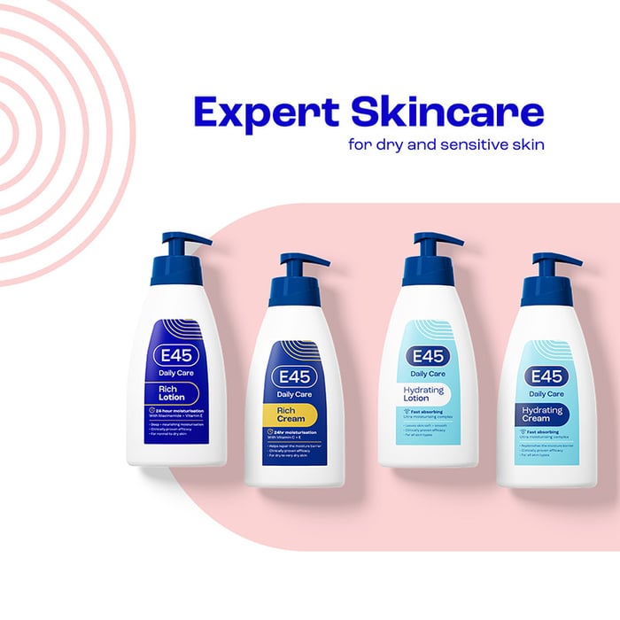 E45 Rich 24H Cream is free from fragrance and dermatologically tested on dry, sensitive skin. If you have sensitive skin, or if you’re worried about allergic reactions, we recommend doing a patch test first. Patch testing involves applying a small amount of product to the skin and leaving it on to see if a reaction develops.